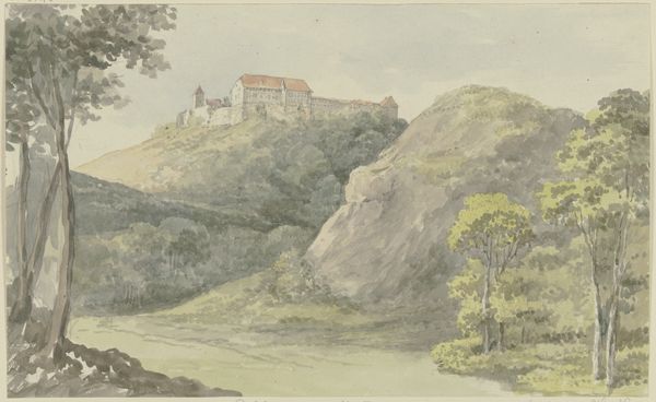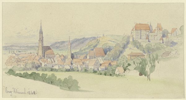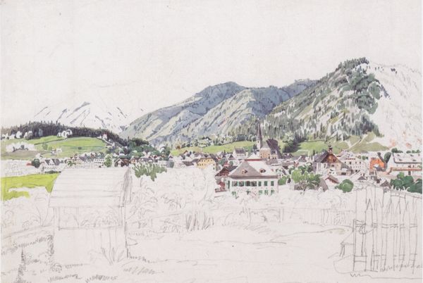 Johann Nepomuk Passini created this watercolor, "View Over Bad Rohitsch-Sauerbrunn in Styria, Bathing Facilities Seen from Ferdinandshügel," in the 19th century. It presents a picturesque vista of a spa town nestled in the Austrian countryside. The image speaks to the burgeoning culture of leisure and health in 19th-century Europe, where mineral springs and bathing resorts became fashionable destinations for the upper classes. These spas were not merely places for physical rejuvenation but also sites of social exchange and display, reflecting a growing emphasis on personal well-being and refined social conduct. Passini's choice of perspective, looking down from Ferdinandshügel, offers a controlled and ordered view of the town, reinforcing the idea of a cultivated and civilized landscape. Historians can consult social and economic records to better understand the rise of spa culture and its connection to broader transformations in European society.