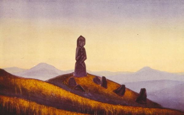 Nicholas Roerich created Black Gobi, a painting that draws us into a world shaped by both historical exploration and spiritual quest. Roerich, a Russian artist, archaeologist, and theosophist, made his mark in the early 20th century. Here, the Gobi Desert is rendered in shades of purple and blue, and becomes more than just a place; it's a symbol of Roerich's spiritual journey. His expeditions through Central Asia weren't merely geographical; they were deeply entwined with his search for mystical wisdom, for a connection to ancient cultures and esoteric knowledge. The standing stones evoke a sense of timelessness. Roerich sought to capture the emotional resonance of these sites, presenting them as more than just landscapes, but as places imbued with a profound sense of history. Roerich once said, "Art will unify all humanity." In Black Gobi, we see his vision of art as a bridge between cultures, a medium through which we can access the spiritual dimensions of our shared human experience. It stands as a testament to the power of art to transcend boundaries.
