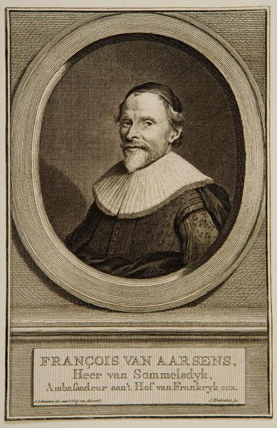 This engraving of François van Aerssen was made by Jacob Houbraken in the 18th century. It is composed of minutely incised lines on a copper plate, which would have been inked and printed onto paper. Look closely, and you will see how the material has influenced the work’s appearance. Houbraken’s skillful lines capture Aerssen’s likeness and the textures of his clothing. Consider the labor involved in producing such detail, each line a testament to the engraver's hand. The proliferation of prints was tied to increasing levels of consumption, and also played a role in solidifying social status. Engravings like this one blur the lines between art and craft, requiring both technical skill and artistic vision. Appreciating the material and making of this work allows us to understand its cultural significance, and question traditional hierarchies of art.