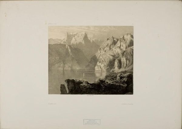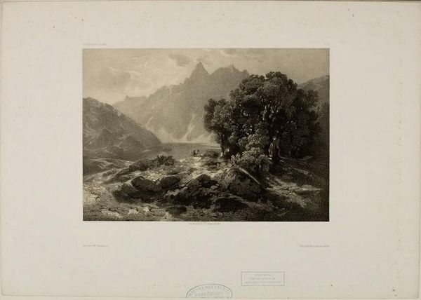 Curator: Let's explore Alexandre Calame's "Landscape Number 38", currently held here at the Harvard Art Museums. Editor: Ah, the old Romantic impulse! Immediately I’m drawn into its almost theatrical drama—the way light struggles to pierce the dark, rocky foreground. Curator: Calame, a 19th-century Swiss artist, tapped into the rising bourgeois taste for sublime landscapes. Mountain scenes like these were particularly potent symbols. Editor: Absolutely. It's less about botanical accuracy, more about stirring up big feelings. You know, the kind that make you want to compose an epic poem, or at least dramatically sigh. Curator: Indeed. Consider the context: Europe grappling with industrialization, people longing for untouched nature. Calame's paintings offered a powerful, if idealized, vision. Editor: Looking at it now, I’m getting a "quiet before the storm" vibe, which resonates, given the historical anxieties of the era. Almost prophetic, in a way. Curator: A landscape imbued with a sense of historical foreboding, perhaps. It certainly invites deeper reflection. Editor: It does. It feels like more than just trees and rocks; it's a whole mood.