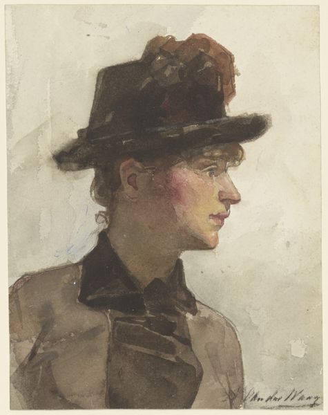 Editor: So this is a drawing of George Michael Cohan by Harrison Fisher, created in 1916, using pencil. It's a portrait, very formal and serious, capturing him in a suit and hat. What do you see in this piece? Curator: Beyond just a portrait, I see a careful negotiation of identity, power, and representation. It's a portrait of a man who performed on stage, but more importantly, during a period of immense social change in America, particularly regarding immigration and the rise of celebrity culture. Fisher, known for idealizing the “American Girl,” is portraying Cohan. What does it mean to depict this figure, during that time, in such a…polished way? Editor: That’s an interesting point. I hadn't considered it in terms of social change, or Fisher's reputation with female figures. Curator: Think about Cohan's performances and the narratives they promoted; the performative construction of patriotism and what it meant to be "American" at the time. Fisher, through his medium, through this gaze, perhaps affirms or even interrogates Cohan’s persona. Could this be a commentary on the creation of celebrity? Is it simply documentation or a contribution to the myth? Editor: So you're saying the drawing could be as much about constructing an image as it is about capturing a likeness? Curator: Exactly. The ‘American’ identity was – and is – an ongoing process of construction and negotiation, through media such as this. A portrait isn't neutral; it's always saying something. Editor: I guess I usually just see "art" and not all of the layers of meaning. This gives me a lot to think about! Curator: It's all connected, isn't it? Art, identity, and the world around us. Thinking about these portraits as performances is key.