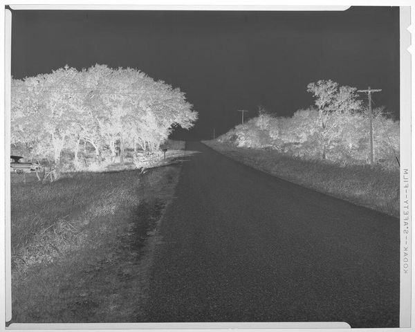 Editor: Here we see Harry Annas’s small black and white photograph, titled "Untitled (wrecked truck on side of road)." The overturned truck is so striking! What do you see in this piece? Curator: This image highlights the life cycle of objects and their relationship to labor and consumption. The wrecked truck, once a symbol of productivity, now rests as discarded matter. Editor: It makes me consider how the making and eventual destruction of objects reflects our own cultural values. Curator: Exactly. Annas presents a potent reminder of material culture's transient nature. Editor: I see now how it makes us think about waste and the resources required to produce the truck in the first place. Curator: Precisely, it's an image that lingers, prompting reflection.