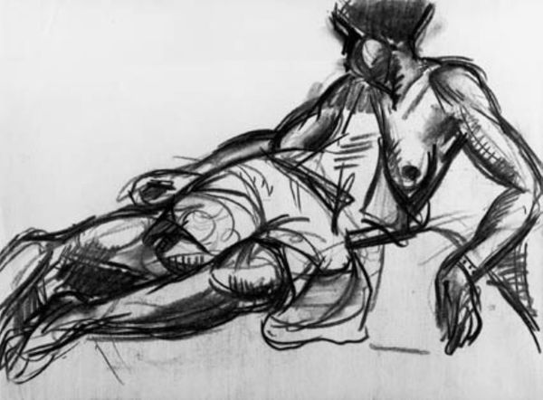 This untitled drawing was made with graphite on paper by Craig Mullins. Graphite pencils are a relatively recent invention, but quickly became a ubiquitous, inexpensive, and effective method for quick sketches and precise drawing alike. Here, we can see that Mullins is less concerned with the sharp precision the medium allows, and more interested in the tonal range that can be achieved by varying the pressure, and angle of the pencil. The texture of the paper also plays an important role; the toothy surface catches the graphite, creating a lively, broken line that gives the impression of movement and vitality. Mullins has also smudged and rubbed the graphite in places, creating areas of shadow and depth. These techniques may seem informal, yet they are evidence of careful observation and skilled manipulation. While a quick sketch may not have the same material presence as a painting or sculpture, it reveals the artist's thought process and working method. It invites us to consider the social and economic context of artmaking, where the use of humble materials can result in powerful and expressive imagery.