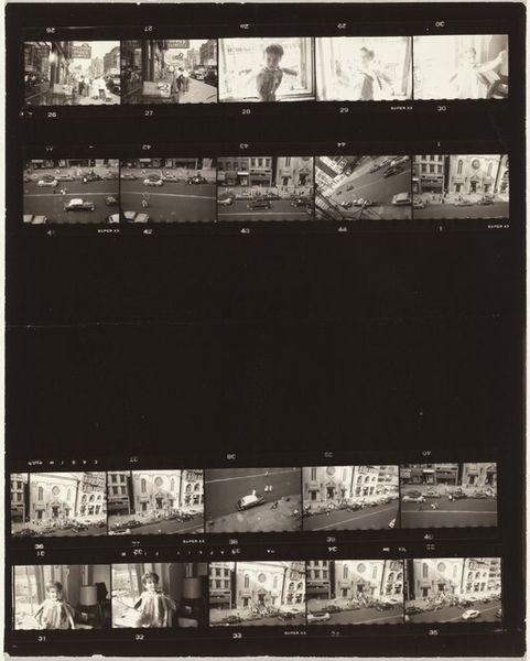 This is "Early New York City no number" by Robert Frank, made at an unknown date with gelatin silver print. Look at this matrix of different images, Frank’s way of seeing becomes a kind of fragmented diary. There's a particular frame, almost centered, where an older man is caught in motion, mid-sentence perhaps, caught in the midst of life. The grain is so present, the blacks rich, giving a tactile feel to the print. It feels like you could touch the shadows. The composition is raw, direct. Each frame pulses with its own rhythm, like individual thoughts strung together. Frank reminds me a bit of Garry Winogrand, in that sense of immediacy, but maybe with a touch more melancholy. It all feels so unfinished, alive. This piece isn't about answers, it's about the ongoing conversation, the beautiful, messy process of trying to figure things out.
