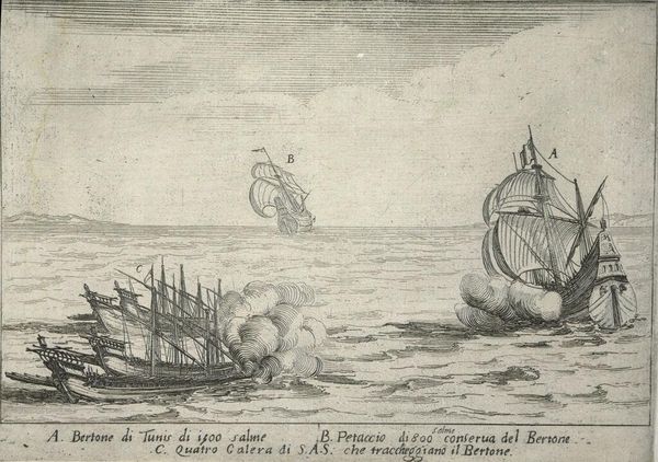 Curator: Melchior Küsel's etching, "Summer or Pleasure-House in Livorno", presents a detailed harbor scene. The dynamism captured through line and form is striking. Editor: Yes, the scene pulses with activity. Look at the figures disembarking, the architecture receding into the background, all rendered with incredible detail. One can almost feel the bustle of a port city. The marks of the metal plate on paper seem so delicate yet the overall image conveys a very active scene of labor. Curator: The composition masterfully employs foreground and background to create depth, doesn’t it? That column in the foreground anchors the eye, allowing it to travel across the busy scene. Editor: Absolutely. And the contrast between the solid column and the frenetic activity suggests a tension between stability and commerce, the grounding presence that allows for maritime exchange. Curator: I agree. It's a fascinating interplay of form and narrative. Editor: A very palpable insight into how materials shape our perceptions and experiences, indeed.