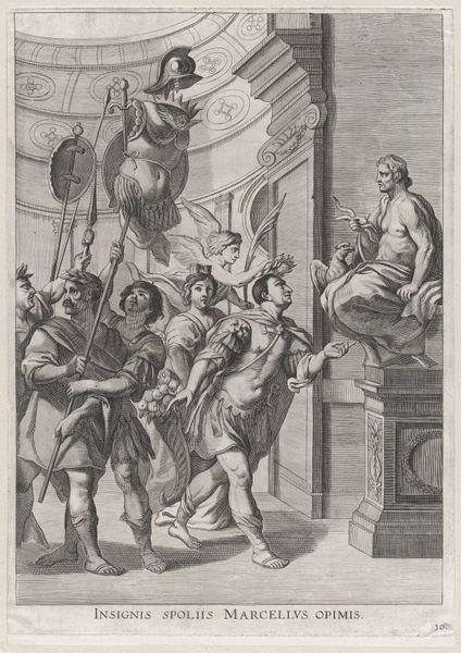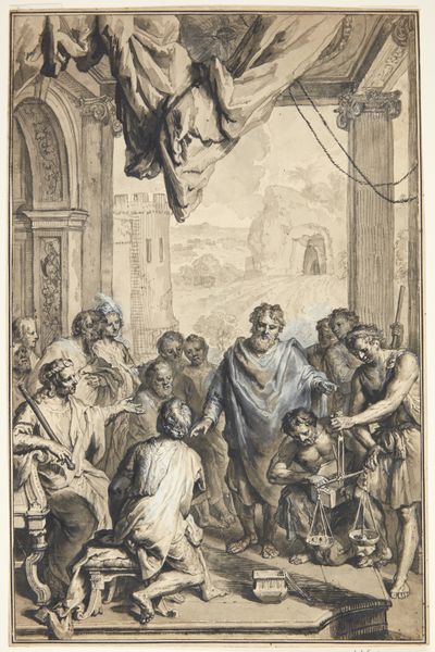Gilliam van der Gouwen created this print, "Abraham koopt de akker van Efron" or "Abraham buys the field of Ephron," which depicts a biblical scene through the lens of the Dutch Golden Age. During this era, the Netherlands experienced unprecedented economic growth and cultural flourishing, but the accumulation of wealth also spurred debates about morality and social justice. Here, Abraham weighs out silver to purchase land, a transaction laden with implications of ownership, labor, and exchange. Consider the figures surrounding Abraham: who are they, and how might their social standing influence the scene? Note the detail given to the act of weighing, a symbol of justice but also of commercial exchange. Perhaps van der Gouwen urges us to reflect on the intersection of faith, ethics, and commerce. This work compels us to consider the value we assign to land, labor, and our relationship with the ‘other.’ How do our transactions shape our identities, both individually and collectively?