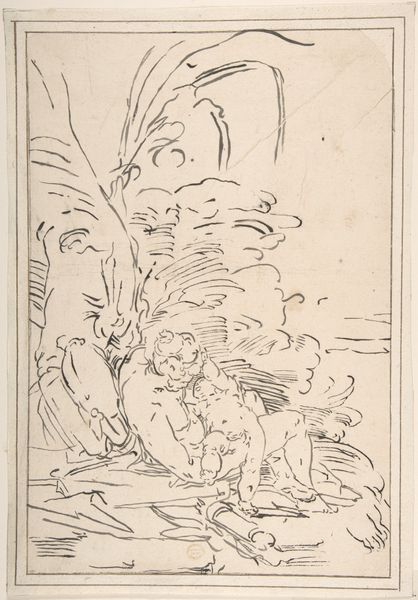 Luca Cambiaso rendered this drawing with pen and brown ink, capturing Venus, Cupid, and a satyr. The figures are arranged beneath a sheltering tree, a motif which has been deeply entrenched in the collective memory of pastoral scenes since antiquity. Here, Venus disarms Cupid, taking his arrows—a forceful gesture that echoes across centuries, appearing in various forms from classical sculptures to Renaissance paintings. Consider, for instance, how Botticelli reinterprets this theme, infusing it with a new, yet familiar, sense of tension between divine love and earthly play. The satyr, peeking from behind the tree, brings to mind the dual nature of man, the Apollonian and the Dionysian, forever wrestling within our subconscious. Cambiaso taps into these archetypes, engaging us on a profound level. This interplay of restraint and instinct has perpetually resurfaced throughout art history, each era reinterpreting the delicate balance between order and chaos.