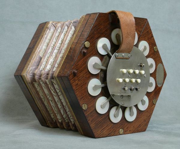 Editor: Here we have Abraham Prescott’s "Rocking Melodeon" from 1825, a wood sculpture of what seems to be a very early type of accordion. The materials look aged and worn, giving it a sense of history and use. What stories do you think it could tell, what do you see in this piece? Curator: This melodeon, seemingly simple, speaks volumes about early American society and the role of music within it. Instruments like this weren't mere entertainment, they were cultural objects. They democratized music-making, bringing social gatherings to life at a time when access to instruments was limited to wealthier segments of society. Notice its wooden construction and relative simplicity. Editor: So it was more than just about making music? Curator: Absolutely. The accessibility of this instrument underscores broader social movements towards equality and participation in cultural life. Who had access to musical education? Whose voices were amplified, and whose were silenced? Think about the types of folk music that might have been played. Who was playing them, and for whom? Were women and marginalized groups able to fully participate? The 'Rocking Melodeon' becomes a site for considering social mobility and cultural expression. What do you make of that, looking at it as an object today? Editor: I guess it gives new context to music history, understanding these instruments as both a medium and a symbol of cultural participation. It prompts you to think beyond the notes, towards who played them and why. Curator: Exactly, the Melodeon embodies cultural dynamism and the struggle for representation in early 19th-century America. It makes you think, doesn't it?