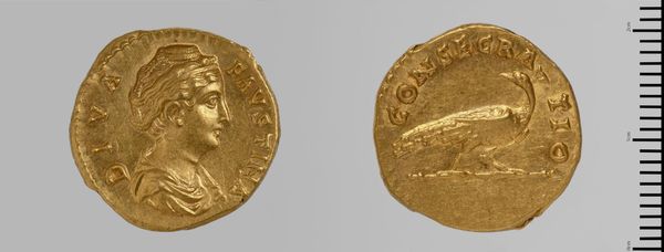 Curator: Here we have a Roman gold aureus struck for Matidia, now residing in the Harvard Art Museums. It's remarkably tiny, you know? Almost fits in the palm of your hand. Editor: The weight of history in your hand, though. And look at that gleam – that's pure, unadulterated power rendered into a portable form. What would a thing like this buy you back then? Curator: Oh, everything and nothing, I suppose! But more materially, it's fascinating how the coin immortalizes Matidia. It must have been an immense task to strike each individual coin with such precision in the first place. Editor: It speaks volumes about labor, doesn’t it? To create such a lasting impression, with a die no doubt painstakingly carved by hand. It makes you think about the artisans, the working class people who brought something like this to life. Curator: Absolutely. And that connection is tangible, literally, every time someone handled this coin. Editor: Makes you wonder what kind of hands it passed through, what stories it could tell. It is still in pretty good condition to this day.