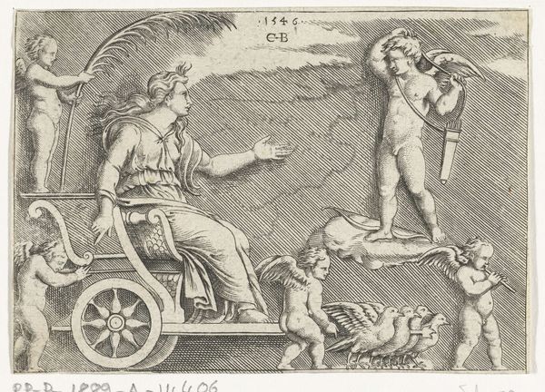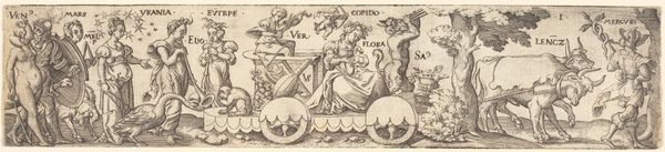 This engraving is Sebald Beham's "Triumphal Procession," made around the mid-16th century. The composition unfurls horizontally, a frieze of figures and vehicles densely packed together. Beham’s use of line is particularly striking. Notice how he uses hatching and cross-hatching to create depth and shadow, giving volume to the figures and objects within the essentially two-dimensional space. The subject matter, a triumphant procession, would have been familiar to viewers of the time, rooted in classical antiquity. Yet, Beham’s treatment is not merely representational. There's a tension between the subject’s grandness and the almost claustrophobic density of its depiction, creating a sense of unease. Is Beham celebrating triumph, or subtly critiquing its excess? Consider also how the engraving’s medium—the stark contrast of black ink on white paper—emphasizes the graphic quality of the image. This allows Beham to play with form and space, inviting us to question the values and meanings embedded within such displays of power. What we are left with is not a clear message, but an invitation to reflect critically on triumph itself.