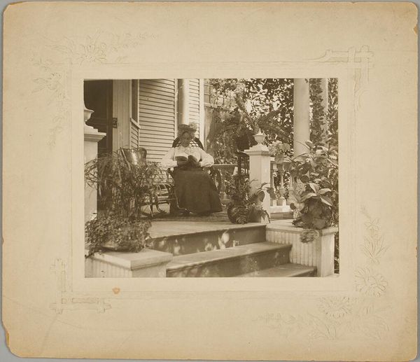 Curator: Augusta Curiel, a photographer active in Suriname, produced this captivating group portrait around 1905. It’s titled “Young Couple Sitting Among Bouquets.” Editor: My initial reaction is a feeling of being overwhelmed by the floral abundance. The sheer volume of bouquets almost obscures the couple at the center, creating a visual paradox where they seem both central and recessive. Curator: The excess does draw attention to issues of status. This would have been a monumental display of social connections and prosperity, broadcast through the medium of photography which, at the time, was still relatively novel. The sitters themselves would have probably occupied a certain position within the society of Paramaribo. Editor: I notice how the light filters in through the sheer curtains in the background, contrasting sharply with the almost velvety darkness of the interior. It's cleverly manipulated, creating depth. Also, notice how everything leads up to them? A dark suit and a plain white blouse, drawing one to their expressionless gazes... It is interesting. Curator: Expressionless is a little harsh, wouldn't you say? Considering the setting, it's more formal than somber. The bouquets and even the patterned rug under their feet suggest an atmosphere of celebration. Perhaps they are being honored. We also have to consider Curiel herself, a pioneering woman in a male-dominated profession, documenting a specific segment of Surinamese society. This in itself gives the photograph weight, adding her social context to the visual narrative that we see in front of us. Editor: Well, sure, the photograph captures a social milieu, no doubt. But structurally, those bouquets are acting as literal framing devices, hemming in the figures to generate a certain aesthetic unease. But at the end we have a beautiful composition, using the conventions of light and contrast of photography. It is more than documentary; it evokes more than its literal presence. Curator: In the end, whether it speaks to societal dynamics or formal composition, it prompts us to consider the multiple layers inherent within even a seemingly simple photograph. Editor: Absolutely, a floral fortress encapsulating social significance, and a testament to Augusta Curiel's talent for capturing an ephemeral moment in an eternal frame.