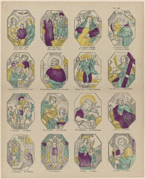 Philippus Jacobus Brepols created this print of saints and angels in the 18th or 19th century. Notice the recurring motif of the halo, a radiant circle above the heads of the figures. It signifies divine grace and holiness, marking each individual as sacred. This symbol isn't unique to Christian art. We find similar circular auras in ancient Greek and Roman depictions of gods and emperors, signaling power and divinity. Consider Apollo, the sun god, often depicted with a radiant crown. Over time, the halo's meaning has deepened, evolving from a symbol of status to one of spiritual enlightenment. Observe how the consistent presence of the halo across centuries speaks to a collective longing for the divine, a subconscious desire to connect with something greater than ourselves. It is a visual echo resonating through time, reminding us of the enduring human quest for transcendence. This symbol, once pagan, then Christian, continues its cyclical journey, taking new forms but forever bound to its original source.