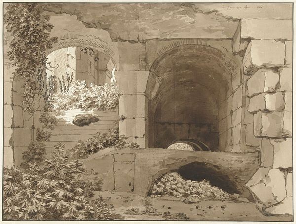 Jean René Méliand created "Rustics Picnicking in Ruins", a drawing rendered in ink, where meticulous lines and hatching define a scene of pastoral leisure amidst crumbling architecture. The composition is structured around contrasts: the rough, aged stones against the smooth, simple lines of the figures' clothing. Méliand uses the formal elements to convey themes of time and decay, placing contemporary figures within a historical tableau. Note how the strong verticals of the standing architecture juxtapose with the receding horizontals of the ruins. This contrast highlights a tension between past grandeur and present reality. The figures, diminutive in scale compared to the ruins, suggest a humbling perspective on human existence against the backdrop of history. In its delicate linework and structured composition, the drawing invites reflection on the transient nature of human endeavor, and the enduring presence of the past within the contemporary landscape. It encourages viewers to consider the interplay between form and content, where the method of representation shapes our understanding of time, memory, and the human condition.