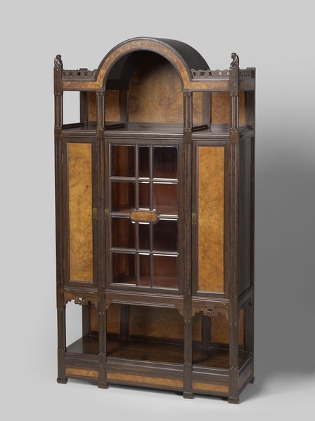 This display cabinet, crafted by 't Binnenhuis, features carved floral motifs, symbols that extend far beyond mere decoration. These stylized botanical forms, reminiscent of wings, roots, or sprouting seeds, speak to the eternal cycle of nature. Think of the ancient Egyptian lotus, reborn daily with the sun, or the acanthus leaves adorning classical architecture, each a symbol of regeneration and growth. Here, they appear on a domestic object, instilling it with nature's vitality. Consider the 'tree of life', a motif deeply embedded in our collective unconscious. It resurfaces through millennia, bearing varied symbolism of interconnectedness and the eternal renewal of life, a shared dream of humanity in visual form. This cabinet is more than storage; it's a subconscious reminder of life's enduring promise.