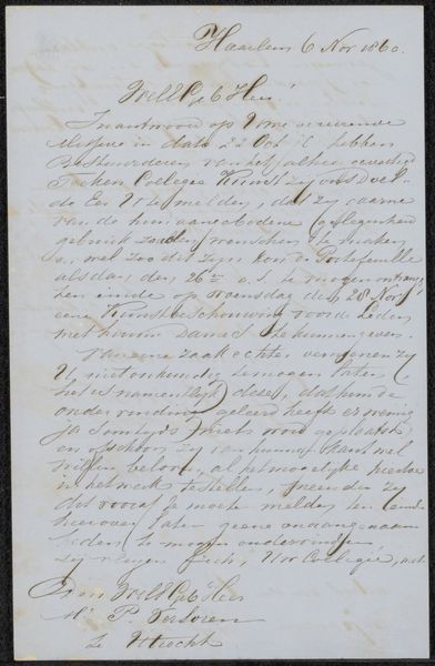 Editor: Here we have a fascinating piece – "Brief van Jacob Reynst vanaf het schip Damiaren," possibly from 1748, created by Jacob Reynst. It’s ink on paper, a letter, really. The handwriting itself is striking; it gives me a sense of immediacy, of witnessing thoughts unfolding directly onto the page. What do you see in this, considering its historical context? Curator: It's precisely that sense of immediacy we must unpack. This letter, viewed through a historical lens, transcends its personal context. Think about the Dutch East India Company, and the political tensions surrounding naval power at that time. Reynst's letter, ostensibly a private communication, also becomes a document shaped by, and contributing to, the very structures of colonial power. Editor: So, it's not just about one man writing a letter; it's about the systems that enabled that letter to be written and transported. The ship he’s on, the Damiaren – it represents a massive undertaking. How would this letter have been read or received publicly if it was somehow intercepted? Curator: Exactly. Even within a private sphere, these individuals understood that everything they said was being monitored. Think about how such imagery was used to inspire national pride, to justify these expensive ventures, even during times of struggle. This everyday letter could have very easily been weaponized in the theatre of public discourse. Editor: That's fascinating. It's amazing how something seemingly so simple can be a window into a much larger, more complex system of power and representation. Curator: Indeed. It highlights the deeply intertwined relationship between the personal and the political. Recognizing art as historically embedded reveals layers of social meaning. Editor: Thanks, this really broadens how I consider even seemingly 'simple' art.