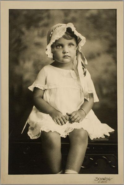 This gelatin silver print, showing a young girl with a bow, was made by Paul Gittings. It speaks to the role of photography in shaping social perceptions and documenting cultural norms. As a photographic portrait, the image participates in the visual codes of its time, evoking notions of innocence, purity, and domesticity, commonly associated with childhood in the mid-20th century. The bow and the dress may signify a particular social class, reflecting aspirations and values of that specific group. This work can be better understood with more information about the artist’s studio. Archival records like studio ledgers, client correspondence, and even fashion magazines from the time, will contextualize this image within a network of social and institutional practices. The portrait isn't just an aesthetic object; it's a cultural artifact that reveals broader patterns of social life.