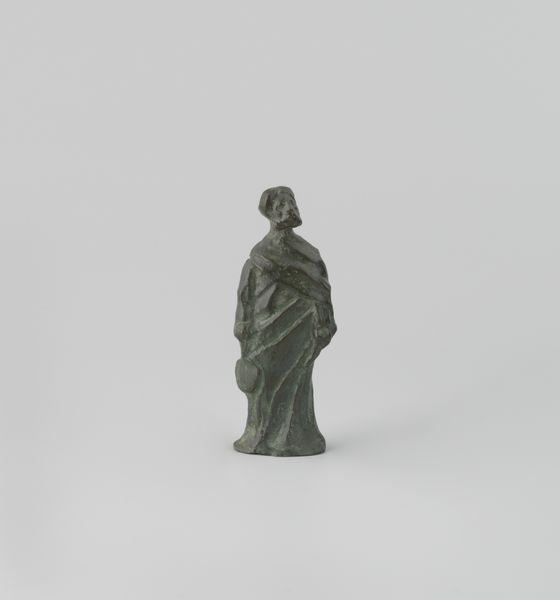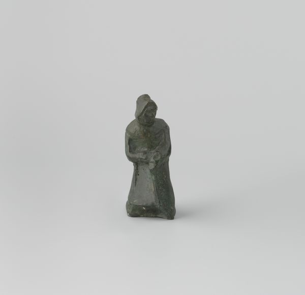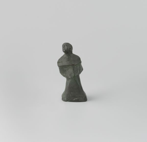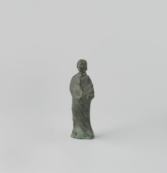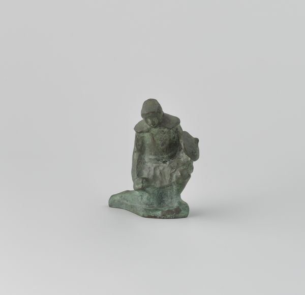 Saar de Swart made "Toren 2" out of bronze, but when, exactly, is anyone’s guess! This sculpture is like a little monument to the process of making itself. Look at how the light catches the uneven surface, the bumpy texture, the green-ish patina over the dark metal. It's rough and tactile. You can almost feel the artist's hands shaping the clay before it was cast. The figure is crouched, leaning on what could be a pillar, or maybe just a geometric form. There's a quiet, contemplative mood in the way the figure bends their head. That sense of something solid supporting something soft reminds me of Rodin’s more figurative sculptures, but without all the drama. There’s a raw, personal feel to this piece, an intimate exploration of form and balance. It’s not about perfection; it’s about the journey.