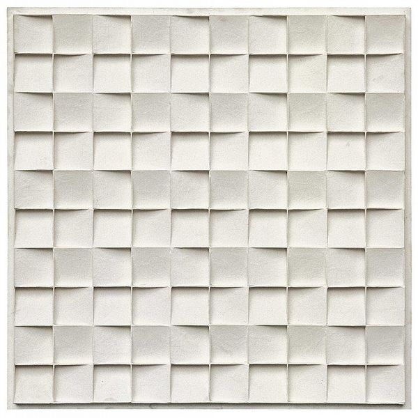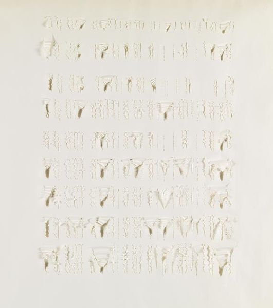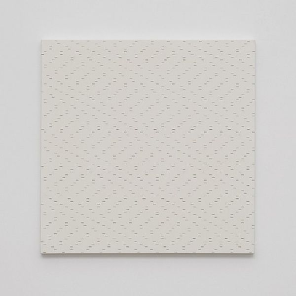 Robert Ryman made this white painting, called Points, with paint, probably oil, and a brush. The whole thing is these marks, kind of like commas, or dashes, all going in different directions. It's like a field of white on a barely-there-grey ground. It’s so physical, you know? The texture is everything. Look how the light catches those strokes. It’s not just about color, but about what paint *does*. The way it sits on the surface, the thickness and thinness, how it reflects light. Each stroke feels like a decision, not labored, but considered. See how some of the grey ground shows through? It's so simple, but it’s also complex because it’s about how we *see* painting. I think about Agnes Martin, whose grids do something similar with line. It's not just one thing, it’s an ongoing conversation about what painting is, or could be.