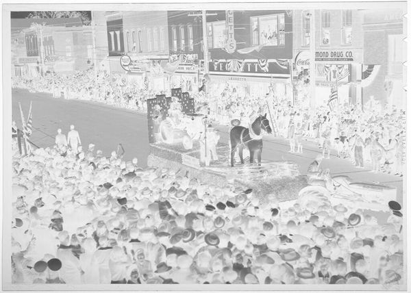 Editor: This is an untitled photograph by Peter James Studio, showing people watching a dance performance. I’m struck by how the artist captures both the energy of the performance and the stillness of the audience. What compositional elements stand out to you? Curator: The contrast between the dancers' dynamic poses and the audience's rigid forms immediately catches my eye. Notice how the photographer uses light and shadow to create depth. The image is a study in duality—movement versus stasis, performance versus observation. Editor: That’s a great point about the contrast. I hadn’t considered the interplay of light and shadow so intentionally. Curator: Indeed, consider how the photographer uses the frame itself to emphasize these oppositions. The very edges of the photograph seem to contain the energy within, focusing the gaze on this interplay. Editor: It's fascinating how much can be gleaned from the formal elements alone. Thanks for pointing that out! Curator: My pleasure. There is much to see in the interplay of shape and light.