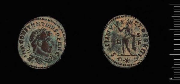 Editor: So, this is a Follis of Crispus, from Arelate, an ancient city in Gaul. It’s… well, it's a coin. A rather worn one, at that. What can you tell me about its significance? Curator: Coins like these aren't just money; they are powerful tools of political communication. Consider the image of Crispus, son of Constantine, presented on one side and the figure representing victory on the other. How do you think this imagery would shape public perception of the emperor and his reign? Editor: I guess it's a way to broadcast power and legitimacy. So, it's like propaganda? Curator: Precisely. The placement of these coins into the economy effectively embeds imperial ideology into everyday transactions. What does it mean to handle power? Editor: That’s a great point. I never thought of it that way.