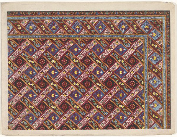 Jules-Edmond-Charles Lachaise designed this coffered ceiling in red and gold, though the exact date is unknown. The design is rendered in pencil, watercolor, and gouache on paper. A coffered ceiling is essentially a grid of recessed panels, often highly ornamented, with its origins in ancient architecture. The design here suggests a richly decorated surface, evoking luxury through its intricate geometric forms. The contrast between the wooden beams and the red and gold infill creates visual interest, drawing the eye upward, toward the ornate plasterwork rosettes and guilloche frieze. What’s interesting about this drawing is the way that it reduces the immense labor required to produce a coffered ceiling to a delicate design. The skilled woodworkers, plasterers, and painters, essential to bringing this kind of architectural feature to life, are rendered invisible. This design captures a moment in time, between the original architectural concept and its realization through collective labor. It reminds us to consider the material, the making, and the social context in which it was produced.