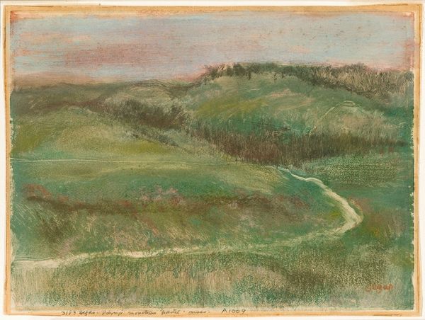 Edgar Degas rendered this landscape with pastels, emphasizing the winding pathway. The path, as a symbol, stretches far back into antiquity, often representing life's journey or a pilgrimage. Recall the labyrinthine paths in ancient Greek myths or the spiritual roads in Buddhist art. Degas's path lacks a clear destination, shrouded by the landscape, inviting introspection. It echoes the 'wanderer' motif found in Romantic paintings, where figures traverse landscapes searching for meaning, reflecting a deep, subconscious yearning for purpose. The path here isn't just a route; it embodies the psychological journey, the twists and turns of fate. It's a visual metaphor for the human condition, resonating with our collective memories of wandering and seeking. Degas reminds us that art is not just about seeing, but about feeling the weight of our shared past.