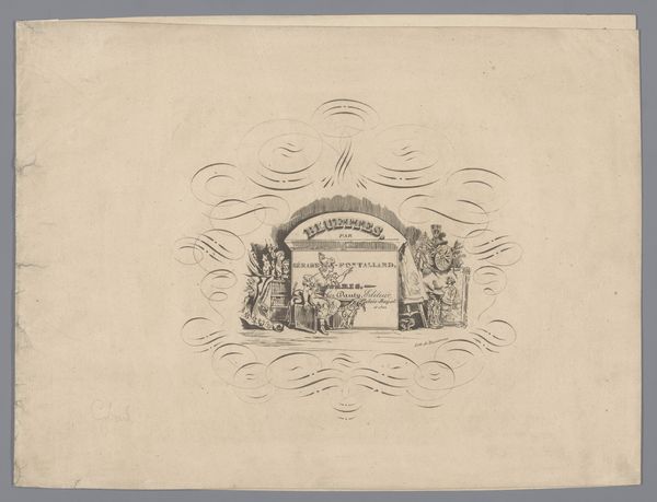 Curator: This engraving, titled "Toneelgordijn van de schouwburg te Amsterdam," or "Theater Curtain of the Amsterdam Theater," dates to 1775 and was created by Reinier Vinkeles. It now resides in the Rijksmuseum collection. The lines are exceptionally precise, rendering a grand allegorical design. Editor: There is a distinct aura of ceremony evoked by the work. Even the monochromatic palette lends a powerful gravity to its subject, enhanced by its clear linear form. Curator: The composition itself adheres to Neoclassical principles: balanced symmetry, with flanking figures drawing the eye to a central, elevated subject. Note how Vinkeles employed line and contrast to achieve a crisp definition, prioritizing clarity and order. The details read exceptionally well, even from a distance. Editor: And such detail. Observe the meticulously rendered objects – musical instruments, wreaths of flowers – they feel laden with symbolic intent. That radiant figure aloft on clouds and a hive mounted on a pedestal are the dominant symbols; clearly charged with significance beyond their form. The honeycomb is almost too obvious to mention. Curator: It does hint towards industriousness. What about the seated figures, appearing like resting scholars? Do you interpret them as symbols too? Editor: Absolutely. The presence of Mercury is easily identifiable with intellect and negotiation. As such, the other similarly attired figure, then, most likely embodies a correlating value or discipline related to theatre production. Curator: It provides layers to understanding its purpose in Amsterdam society at that time. Editor: Indeed. As such, after analyzing these aspects, I cannot view this theatrical curtain merely as art. To the contrary, it is a relic, steeped in classical allegory to demonstrate what values society esteemed. Curator: Looking at its careful balance and clarity of line, I better comprehend the cultural landscape of its origins. The material rendering of that perspective holds much influence in my understanding. Editor: Agreed. Now I depart with an enhanced consciousness about eighteenth-century Amsterdam ideals and practices through such iconography, all thanks to the piece.