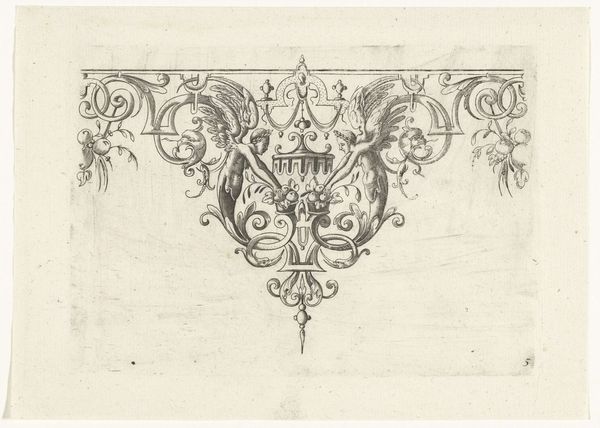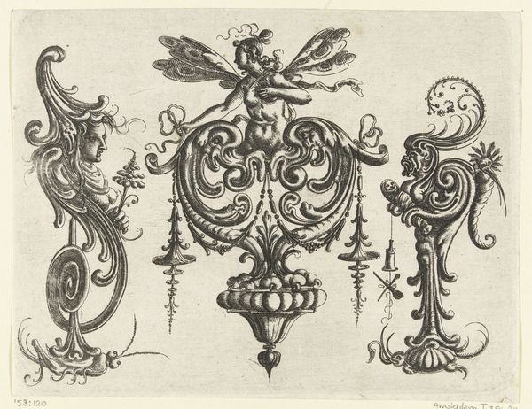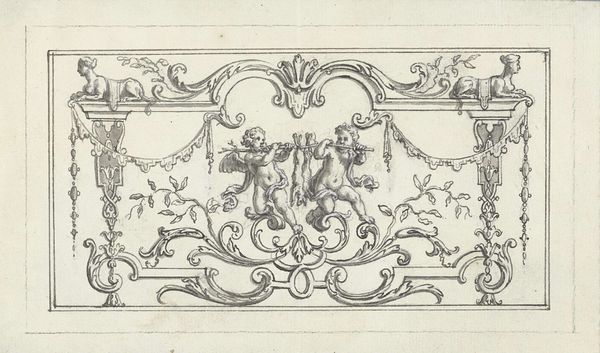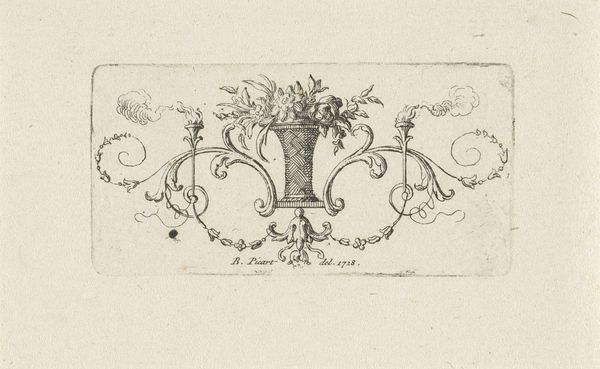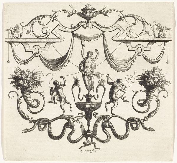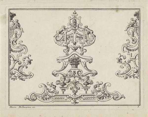 Editor: This is "Twee ornamentranden met portret en vaas," or "Two Ornamental Borders with Portrait and Vase," from 1776, by Placido Columbani. It's a detailed print, almost like a pen-ink sketch. I'm really drawn to the geometric aspect, but the portrait adds a softness to it all. How should we understand its creation in the context of the time? Curator: The meticulous detail is what captures my attention. Consider the etching process itself, the labor invested in creating the plates, and the role of these prints in disseminating Neoclassical taste. They are a tangible product of 18th-century workshops catering to a burgeoning market for decorative arts. Were these intended for individual purchase or architectural workshops? Editor: That’s fascinating, thinking about the economic context of printmaking. I suppose it could have been accessible to people from diverse social classes if produced on a mass scale. Did the choice of materials—the ink, the paper—affect the production? Curator: Absolutely. The quality of paper, the pigments available for the ink, even the tools used to etch the plate, dictated the final product and therefore its value. We must analyze the labor required, from the initial design to the printing process, and question how that impacted its circulation and its status as art versus craft. Notice the skill of Columbani in employing these materials, isn't that impressive? Editor: Definitely. So, rather than focusing solely on the aesthetic value, we should examine its historical and economic origins as a physical object? Curator: Precisely. By understanding the materials, methods, and markets that shaped its creation, we gain a deeper appreciation for its cultural significance. The object exists as evidence. Editor: That perspective makes me rethink how art history can include a broader understanding of how economics shape production. Curator: Yes, now consider the social implications that the work itself creates. A new dimension, isn’t it?