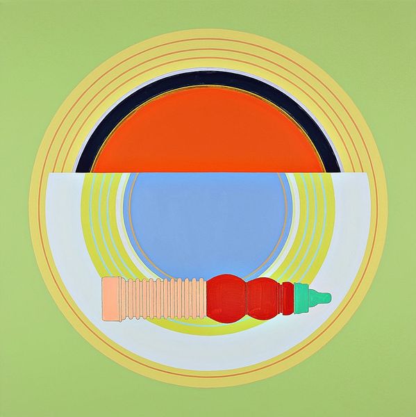 This screenprint, Sunbather, was made by Victor Vasarely, who thought about art as a process of seeing through form, a kind of visual play. Look at the bands of color, pinks and grays, stacked and curved like the topographical map of a body. In this print the surface feels super flat, but the repetition of the horizontal bands and undulating curves hints at depth. It's like a mirage, a sort of optical trick, but with the addition of body parts. See how the absence of color becomes a pair of lips, an eye, a belly button? The negative space, this play of figure and ground, is really working hard. The flattened forms of this print make me think about Matisse and his cutouts. The difference is that where Matisse emphasizes the handmade, Vasarely is interested in the possibilities of mechanized reproduction. In a way, he is interested in the mass production of seeing.