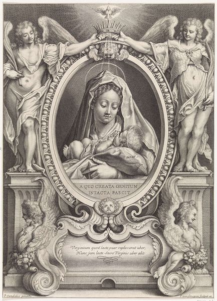 This engraving of Saint Hiltrude, made by Theodoor Galle, presents us with a fascinating array of symbols. Hiltrude, framed by an ornate oval, holds a lamp and a book, emblems of enlightenment and knowledge, reflecting her spiritual wisdom and dedication to learning. Consider the lamp, a universal symbol for wisdom, present in various forms across cultures. Think of the Roman goddess Minerva, often depicted with an owl, or the ancient Greek philosophers seeking truth by lamplight. These recurring motifs tap into a collective memory, a shared human experience of seeking knowledge in the darkness. The lamp, a beacon, reminds us that symbols are never static; they evolve, echoing through time and cultures, constantly acquiring new layers of meaning. This image serves as a powerful conduit, connecting us to the timeless quest for enlightenment, engaging our subconscious on a profound level.