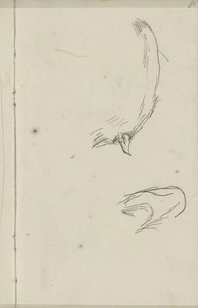 Curator: We’re looking at “Studie,” a drawing done around 1862-1864 by Johannes Tavenraat. It's a pencil sketch on paper, currently held in the collection here at the Rijksmuseum. Editor: My first thought is—ephemeral! Like catching a fleeting moment in nature. All these lines sort of dancing, or maybe like a gust of wind through some reeds? Curator: It’s intriguing to consider this sketch in relation to broader trends in art education and academic drawing in the mid-19th century. Tavenraat's pursuit of abstraction can be contextualized by the evolving philosophies surrounding form and representation. Think about how traditional art academies at the time emphasized precise realism. This departs rather dramatically. Editor: Right? There’s a freedom here. He's less interested in documenting precisely what's there, but more like capturing the feeling of the thing. I like that contrast, of academic discipline bumping up against… pure expressive mark-making. Curator: Exactly. The artwork is an intimate interplay between intention and chance—revealing perhaps Tavenraat’s inner dialogue as he experiments with line and form to evoke the spirit of the scene. The social constraints on artistic expression during the period may not have supported such departures. Editor: That's interesting. Makes me wonder what other rebel sketchbooks were out there... hidden explorations breaking free from the rules. Also, did he just leave it at that, or was this the first move in developing this initial form into a complete depiction. Curator: The drawing resonates today with discussions around artistic freedom. We’re compelled to evaluate whose voices get amplified in art history and how definitions of ‘skill’ and ‘representation’ shape that. What narratives might this drawing interrupt if placed within an exhibition of highly rendered, representational artworks? Editor: Okay, you’ve officially activated my curiosity. I need to go find more of his sketches now! There is this sensation of, oh, like it hasn't fully taken shape yet; that the artist might at any moment start developing something new, and this will disappear into it. Curator: For me, this piece serves as a poignant reminder of art’s capacity to defy expectations. Editor: It's like we've caught a little secret whispering on the page. Cool.