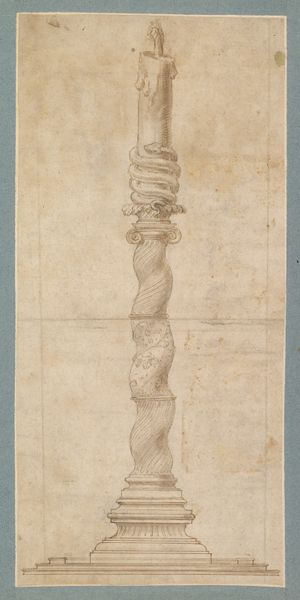 This is an anonymous engraving of a winding column from Saint Peter's in Rome, now at the Metropolitan Museum of Art. The column dominates the composition, its spiraling form and intricate decorations immediately capturing the viewer's attention. The engraver has meticulously rendered the column's twisting flutes and ornate foliate carvings, creating a rich interplay of light and shadow. This not only accentuates its three-dimensional qualities but also draws our eye upwards, as if we are tracing the column's ascent towards the heavens. The winding structure embodies a baroque aesthetic, destabilizing the conventional, static form of classical architecture and alluding to movement. Within its historical context, this piece exists not merely as a depiction of a structural element but also as a potent symbol of ecclesiastical power. The column is a statement of artistic and religious ideology, reflecting the dynamism of faith. The column invites us to reconsider how architecture functions beyond mere utility, serving as a coded vessel of meaning.