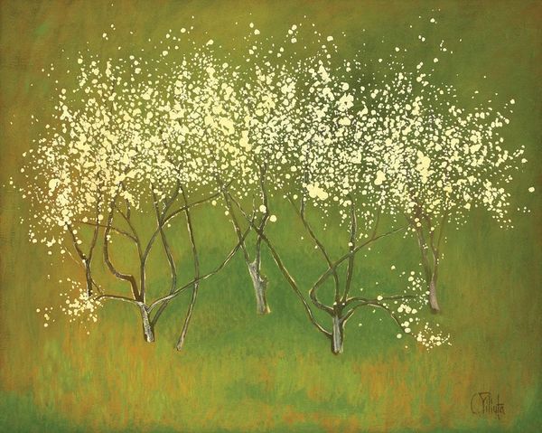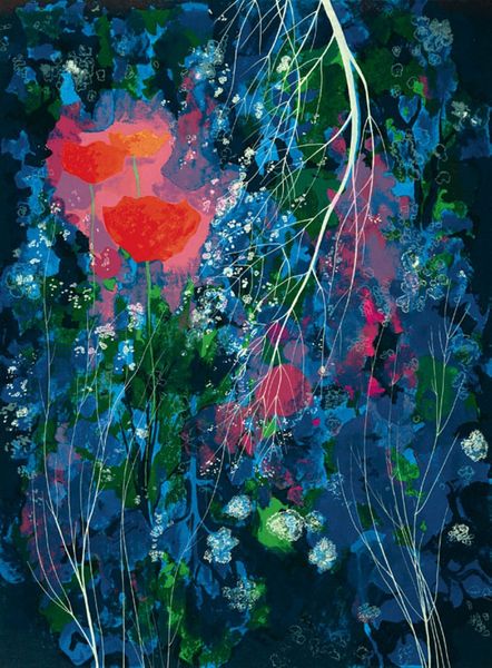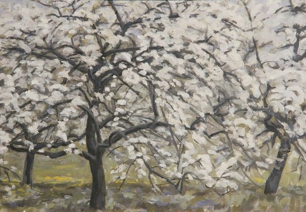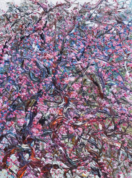 Editor: So, here we have "Almond Blossoms" by Vik Muniz, created in 2005. It’s a mixed-media piece; a collage and photograph all rolled into one. Initially, I’m struck by the intense blue, that overwhelming sense of calm. How do you interpret this work, especially given Muniz's style? Curator: Muniz plays with our perception. He coaxes familiarity from unlikely materials. Doesn’t it tickle you how something like junk can transform into an impressionistic dream? Look at how he mimics Van Gogh’s brushstrokes. It is as if grief transmutes into joyous color – it’s a trick of the eye but also of the soul, wouldn't you agree? Editor: Absolutely! There's definitely a layer of reinterpretation. The original “Almond Blossoms” was Van Gogh finding hope. What could Muniz be trying to convey? Curator: Perhaps it's a reflection on how we find beauty and resilience even in discarded objects, breathing new life into old art. There’s something beautifully poignant in reconstructing such an iconic image from bits and pieces of the mundane, a way of asking where we seek beauty, wouldn't you agree? Editor: I like the idea of beauty being reconstructed. The piece makes you question value – what is art, and what gives an image meaning. Curator: Precisely. It's about transformation and elevating the everyday. And like Van Gogh, maybe he shows us how our personal landscapes evolve, always ripe with potential blooms if we look hard enough. Editor: That makes you think of your own creative process, right? To constantly re-evaluate how to breathe life into what seems obsolete. Thanks for helping me dive deeper. Curator: My pleasure. Remember, looking is seeing, but truly *seeing* is about understanding how things reflect, transform and renew. Keep blossoming.