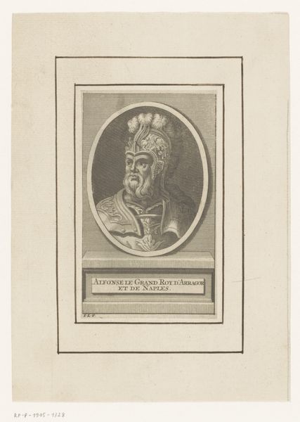 This is Johann Christian Gottfried Fritzsch's "Portret van Karel de Grote," a small engraving housed at the Rijksmuseum. The oval portrait, rendered in precise lines, captures Charlemagne with a solemn gaze. The artist uses hatching and cross-hatching to define the texture of his beard and the opulence of his crown and attire. Fritzsch employs the conventions of portraiture to convey power and authority. The oval frame, a common structural device in portraiture, isolates and elevates the figure. The inscription below acts as a semiotic anchor, fixing the identity and significance of the subject. Ultimately, the engraving serves not just as a representation, but also as a cultural artifact, reflecting the enduring legacy and continuous reinterpretation of historical figures.