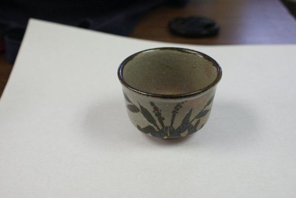 Editor: This is a stoneware sake cup, or guinomi, by Nishihata Tadashi, probably made in the late 20th or early 21st century. It's incredibly tactile; the rough, earthy texture juxtaposed with the smoother, glazed top creates a strong visual and physical contrast. How do you read this object? Curator: Well, considering its function as a sake cup, we must consider the cultural context surrounding sake drinking and its rituals. The roughness you noted is no accident; it rejects the hyper-refined aesthetic sometimes associated with traditional crafts. I’d argue Nishihata is deliberately embracing *wabi-sabi*, finding beauty in imperfection and transience. Does the form or materiality perhaps echo pre-industrial modes of being, implicitly critiquing contemporary consumer culture? Editor: That's interesting! So, by embracing imperfections, the artist might be making a subtle statement about rejecting consumerism and idealization? Curator: Precisely! The very act of slowing down to appreciate the nuances of this handmade object can be seen as resistance. Sake, in this context, transcends mere beverage. It's a tool for social cohesion, yet here, individualized in a uniquely textured cup, suggesting a meditation on the self within the collective. What kind of user is implied, in your view? Editor: Someone looking for a deeper, more meaningful experience, maybe even a bit of solitude. This wasn't designed for mass consumption. Curator: Agreed. And through that quiet act of rebellion, it creates its own significance. Editor: I hadn't thought about the implications of "imperfect" craftsmanship in that way. Thanks! Curator: It’s about acknowledging the political weight carried even by simple objects. Food, drink, and communal rituals... they're all interconnected.