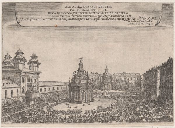 "Pelgrims voor de Sint Pieter in het heilige jaar 1575" was made in 1575 by Giovanni Battista Cavalieri using etching. The print captures the spectacle of pilgrims flocking to St. Peter's Basilica during the Holy Year, an event deeply embedded in the religious and political life of Rome. Cavalieri’s detailed rendering of the crowd invites us to consider the experiences of those who journeyed to Rome seeking spiritual renewal. This was a society deeply stratified by class and gender. Who had the privilege to embark on such a pilgrimage? What motivations drove them? How did this public display of faith reinforce existing power structures? Consider also the architectural backdrop—the imposing Basilica under construction. It symbolizes the Church's enduring power, and the labor and resources invested in its construction reflect the complex relationship between religious authority and artistic patronage. By capturing this moment in time, Cavalieri prompts us to reflect on the intersection of faith, power, and identity in shaping the cultural landscape of 16th-century Rome. The artwork highlights the emotional and social significance of religious gatherings.