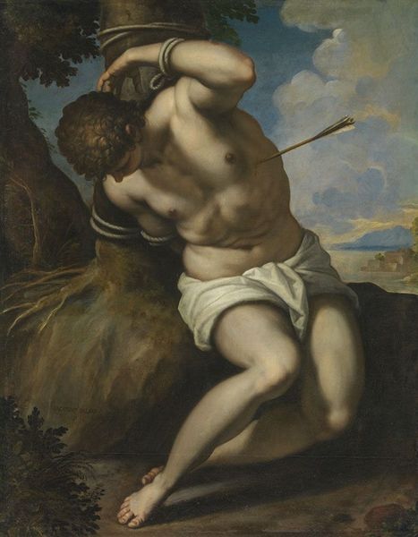 Editor: This painting, "Allegorical Portrait of a Young Man in the Guise of Mercury Slaying Argus" by Alessandro Allori, presents a rather dramatic scene. The figure of Mercury is so striking. What symbols or stories do you see embedded within this work? Curator: The recurring motif of the caduceus, Mercury's staff, is particularly telling. It represents not just healing and commerce, but also a kind of liminal space – a bridge between worlds. Consider too, the slain Argus, whose hundred eyes symbolize vigilance. What happens to those eyes? Editor: I see them scattered on the tail of the peacock. Curator: Exactly! Transformed into a symbol of vanity and display. Allori seems to be exploring how power shifts and how symbols evolve in meaning across time. Editor: That gives me a lot to consider, thank you. Curator: My pleasure. It's a potent reminder that images are never static; they carry echoes of the past even as they adapt to new contexts.
