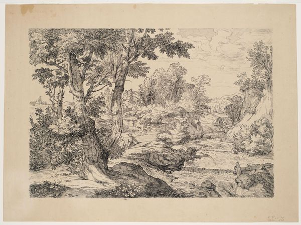 Franz Kobell created this pen and black ink drawing called, "Landscape with Waterfall, Tomb and Sarcophagus", sometime between 1764 and 1822. Kobell, working in Germany during the late 18th and early 19th centuries, found himself amidst the Enlightenment’s increasing emphasis on reason and empirical knowledge and a corresponding shift in artistic and cultural sensibilities. This drawing exemplifies the Romantic movement's fascination with nature as a source of sublime experience. The waterfall, rendered with meticulous detail, dominates the scene, evoking a sense of awe and power. Yet, the presence of the tomb and sarcophagus introduces a layer of melancholy, a contemplation of mortality that was characteristic of Romantic thought. Consider how Kobell intertwines themes of nature, history, and human existence in this piece. Are the figures on the sarcophagus idealized representations? Kobell invites us to reflect on the transience of human life and the enduring power of nature. The artwork remains a poignant reflection on the intersection of mortality, memory, and the natural world.