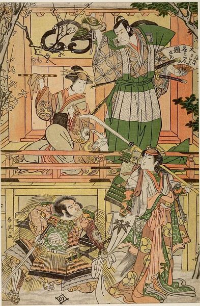 Curator: What strikes me immediately about this piece is the palpable sense of quiet intimacy it exudes. Editor: Indeed. The artwork, titled "A New Marriage, The Rubaiyat of Omar Khayyam" by Edmund Dulac, presents us with a lush, orientalist tableau rendered in watercolor, and potentially some textile embellishments, it appears. Note how Dulac segments the space with a clear emphasis on foregrounded activity. Curator: You know, even without knowing the title, the painting stirs in me the familiar feeling of new beginnings… of embarking on a journey of sorts. Is it the wine being poured? Editor: Perhaps. The composition is certainly designed to direct the viewer’s eye toward this moment of exchange. Observe the careful positioning of the figures and objects, and the lines all converge on the central act of pouring, suggesting ritual and expectation. Curator: It makes me wonder about the narratives woven into the original verses of the Rubaiyat. Dulac's interpretation breathes such life into this intimate moment. The soft washes of color are beautifully harmonious; they lend the piece this warm, dreamlike quality. It’s not just observation—it’s a reverie! Editor: Agreed. The artwork's gentle washes and harmonious colors generate its serene, almost idealized, atmosphere. Also, let's note the inclusion of figuration; and yet the overall impression verges on genre-painting given its thematic leanings towards the everyday rituals and relational contexts implied herein. Curator: It's an interesting thing, isn’t it? How art, especially something as transportive as this, invites us to project our desires, our longings, and memories… into what is essentially color and line and skillful compositional tricks. Still it invites, almost demands our interpretation, our vulnerability to match what’s on display. Editor: Yes. In examining Dulac’s compositional techniques and the ways he’s deployed pictorial space, as well as considering this within the contexts of orientalism and genre painting we can begin to piece together the various representational discourses active here. This fusion enriches both the art-historical appreciation as well as the aesthetic encounter with the artwork itself.