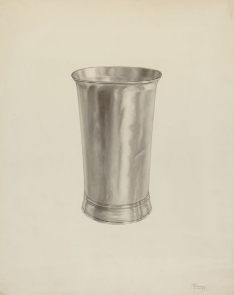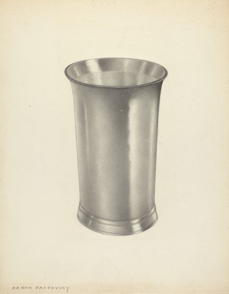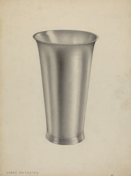 Vincent Carano made this drawing of a ‘Silver Mug’ at an unknown date. It prompts questions about the intersection of art, labor and industry in America. This meticulous study, likely created in the mid-20th century, echoes the precisionist movement's focus on industrial forms and the everyday object, but the lack of context leaves us wondering. Was Carano celebrating American manufacturing? Was he commenting on consumer culture? Or was this a simple exercise in form and representation? To understand this image, we must investigate the artist's life, his involvement in art institutions or commercial industries, and the cultural context in which he worked. By researching Carano's biography and the artistic trends of his time, we can begin to uncover the potential social and political meanings embedded in this seemingly simple representation of a silver mug.