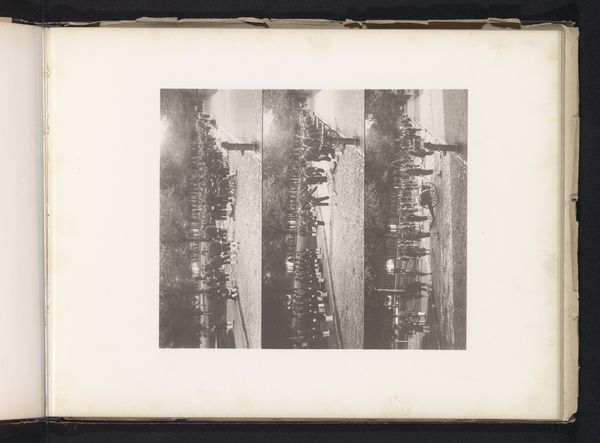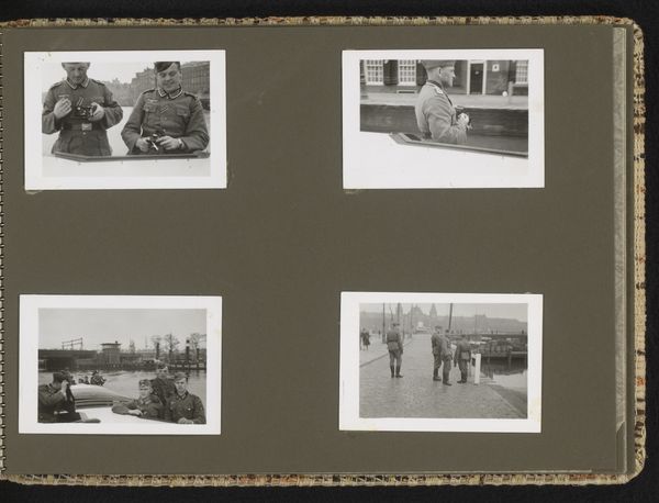 Curator: This photograph, "Matrozen," which translates to "Sailors," comes to us from the period of 1940 to 1943. The photographer is, as yet, unknown. It's a gelatin silver print and forms part of the Rijksmuseum collection. What’s your initial impression? Editor: There’s an immediate sense of formality, of uniformity, even anonymity. All those dark silhouettes lined up against the stark backdrop. The composition feels rigid, controlled. It projects such a somber tone. Curator: I find that interesting, because viewed through the lens of the period, this photograph potentially captures a specific moment during the Nazi occupation. It might well have been employed in propaganda, aiming to present an image of order and conformity. The question arises, what role does this image play in the wider cultural and political discourse? Editor: Exactly. Uniformity can often mask individuality, silencing dissenting voices. The fact it's a group portrait—these men effectively being turned into cogs—highlights a collective identity potentially imposed rather than chosen. It's about power, the power of the state and who gets to control representation. And what about the people who resisted, whose stories weren’t part of that carefully curated narrative? Curator: Yes, and that plays into the power structures in cultural institutions, in this instance with the photographer remaining anonymous. Who decides which voices are heard, which stories are told, and, equally crucially, which are forgotten? The image presents as Realism, but whose reality are we seeing? Editor: This photograph forces us to confront uncomfortable truths about war and how it permeates into all aspects of society. Images like this can be weaponized, normalizing oppression, erasure of self, the cult of the group... so it’s important to approach them critically, acknowledging the complex and problematic power dynamics. Curator: Well, examining "Matrozen" provides a moment of consideration, prompting a valuable critical exploration into the complexities of historical images and their relevance in a socio-political sense. Editor: Agreed, a vital perspective shift, moving from passively viewing art to actively engaging with its power.