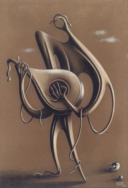 Curator: This striking drawing is Julio Gonzalez's "Figure with Three Balls, No. 2". Editor: It looks precarious! Those heavy shapes balanced so delicately... what is it made of? Curator: The medium is graphite on paper. Gonzalez was fascinated by the industrial materials of his time. Though this is a drawing, it relates directly to his larger engagement with iron sculpture. Editor: So, even in his drawings, he's thinking about the weight and construction of things. How would this have been displayed, and what role would it have played in his practice? Curator: Gonzalez was deeply embedded in the Parisian avant-garde. He exhibited regularly, and likely saw this drawing as a study, a way to explore form before committing to the more laborious process of ironwork. Editor: It's fascinating to see the artist thinking through the possibilities of form and material right here on the page. Curator: Indeed. We see both the artistic process and Gonzalez's fascination with industrial materials distilled.