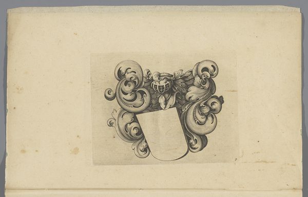 Curator: Ah, this delicate drawing, "Ornamentele versiering van een omlijsting" comes to us from 1766. The artist, P. Baretti, rendered this ornamental design with pen and pencil on paper. Editor: The immediate impression? It's like peering into the past, specifically a very fancy, slightly crumbling past! The line work feels incredibly precise, almost obsessively detailed. Curator: That precision speaks to the function of such drawings at the time. Ornament, even seemingly frivolous details, played a vital role in Baroque-era craftsmanship and societal hierarchies. These designs would dictate how resources like precious metals or specific woods were to be transformed by artisans. Editor: It also hints at an artist's personal explorations, captured in the intimacy of a sketchbook. I imagine Baretti hunched over, carefully hatching those lines by candlelight. It’s not just design, it's also process, the physical act of creating. Curator: Exactly. The support – that is, the paper itself – has visibly aged, becoming a testament to the object's journey through different economic systems, modes of preservation, and even human handling over centuries. The labor that went into its production continues, in a way, every time someone cares for it, studies it, or, indeed, simply looks at it. Editor: It’s a curious paradox, isn’t it? Something meant to adorn other objects ends up being displayed, valued as art in itself. This drawing has outlived whatever grand frame it might have inspired, becoming an artwork worthy of preservation and attention. Curator: Yes, a beautiful object now charged with cultural capital because we continue to care for the art object beyond it’s creation. The materials and artistry elevate it. Editor: Thinking about the making, it really drives home the layers of human intention. It started as an idea, then became a sketch, then… who knows what became of those original aspirations. Fascinating how such simple tools–pencil and paper–can carry such a complex history. Curator: Absolutely, I agree with you and it does give a look into Baroque aesthetic preferences and material constraints. Editor: Ultimately, it gives you so much to look at beyond a sketchbook, and an idea made real.