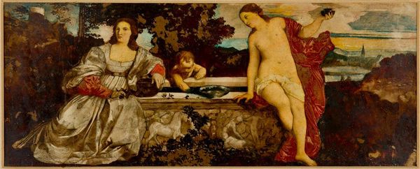 Titian, in this oil painting, presents us with two women, symbols of earthly and divine love, separated by a child. The vessel held by the clothed figure, adorned with jewels, contrasts sharply with the bare breast of her counterpart. This visual language is old, resurfacing in different guises through time. Consider, for example, how the vessel motif appears in ancient fertility rites, a symbol of feminine power. Here, it takes on a different valence, a container of earthly desires. The innocent child, Cupid, connects these two figures, stirring the waters between sacred and profane. Such figures remind us of the insistent presence of Eros throughout human history, a primal force shaping our desires and fears. Titian invites us to reflect on the cyclical progression of symbols, reinvented and reinterpreted to mirror our ever-evolving understanding of love, desire, and the human spirit.