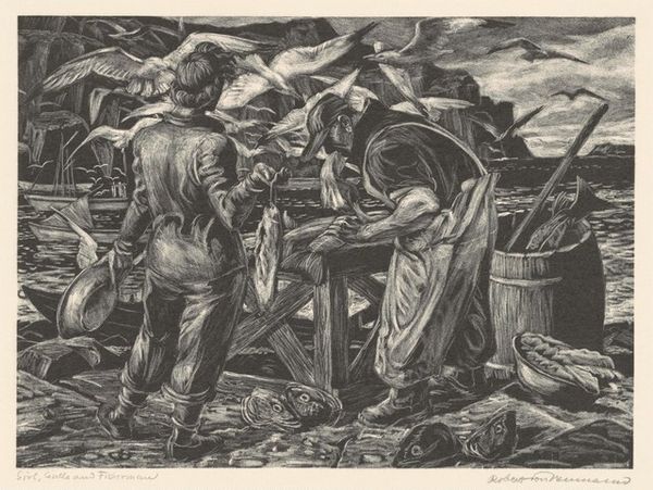 Irwin D. Hoffman made this print, Coal Mine - West Virginia 1930, using lithography. It’s all about marks, isn't it? How the artist coaxes light from dark, how the bodies emerge from the gloom of the mine. The texture is fascinating. Look at how Hoffman renders the coal face. It’s this dense network of hatched lines, almost like a woven fabric. Then contrast that with the smooth, muscular backs of the miners. The stark contrast in tone and texture really drives home the harshness of their labor. There's this one miner, down on his knees, completely absorbed in his work, his whole body seems to echo the curve of the pickaxe in his hands. The gesture is so expressive, it speaks volumes about the physical and mental toll of this work. It reminds me a little of Käthe Kollwitz. Her prints also capture the weight of human suffering, but in a more expressionist way. Hoffman's work feels grittier, more documentary. Both, in their own way, show us the power of art to bear witness.