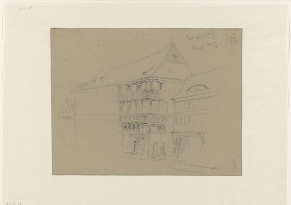 Jan Striening captured this view of the Raadhuis on the market square of Wernigerode in a pencil drawing. The composition emphasizes a central perspective, drawing our gaze towards the Raadhuis which dominates the scene. Notice the intricate details of the architecture, rendered with delicate lines that capture its form and texture. The overall effect is one of lightness and transparency. The drawing employs a semiotic system, where architectural elements serve as signs. The Raadhuis, with its elaborate facade and towering spires, signifies civic authority and historical importance. The market square, though lightly sketched, hints at community and commerce. These visual components, read together, provide insights into the cultural codes of 19th-century German society. Striening destabilizes a pure representation by using very fine, almost invisible lines, and an airy, light, composition. Consider how this formal quality transforms the drawing into a cultural and philosophical statement about place and memory. The piece encourages ongoing interpretation and re-interpretation through its emphasis on structure and semiotic signs.