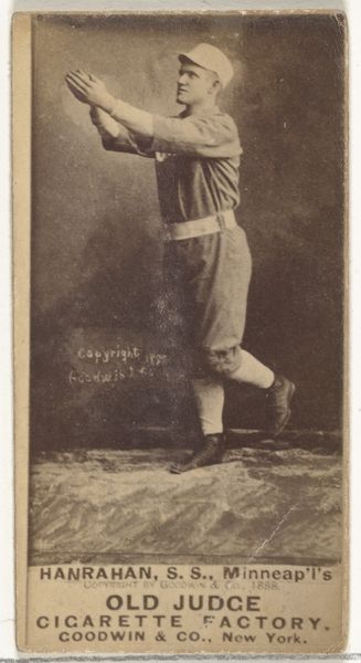 This photographic print pictures James Edward "Jim" Canavan, made in 1889 by Goodwin & Company for Old Judge Cigarettes. The image shows Canavan poised with hands raised, about to catch a ball. The ball, a potent symbol of play and chance, hangs suspended above him. Think of the orb—apple, globe, sphere—a universal symbol across cultures representing perfection and unity, yet here, it is caught in a moment of action and uncertainty. This gesture of catching, of grasping something fleeting, echoes through art history. The image reminds me of Hermes, messenger of the gods, forever caught in motion, forever connecting worlds. Like the hero who snatches victory from the jaws of defeat, Canavan’s gesture is both athletic and symbolic. It reminds us that life, like a baseball game, is a series of catches and misses. The subconscious allure lies in the viewer's projection of their desires and anxieties onto the suspended ball. This image captures the eternal tension between potential and outcome, fear and expectation.