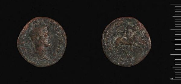 Curator: Here we have a Coin of Perge under Saloninus, part of the Harvard Art Museums collection. Editor: It appears quite worn, yet I'm immediately drawn to its circular form and the faded, almost ghostly, relief. Curator: Its material speaks volumes. Coins like these weren't just currency; they were tools of propaganda and economic control. Who controlled the metal supply? Who oversaw production? Editor: The composition, even in this state, still suggests a clear hierarchy of forms, from the central figure to the surrounding inscription. Note the subtle differences in texture. Curator: Exactly. Minting coins was a highly controlled craft. The symbolism was deliberately chosen to convey power and legitimacy, shaping public perception through repeated handling and exchange. Editor: Despite the wear, there's a kind of austere beauty. It's a fragment of a world, a reminder of power structures rendered into a single object. Curator: Yes, and understanding the coin's creation and circulation helps us understand the empire's reach and the systems of labor that sustained it.