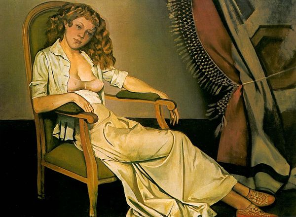 Curator: What strikes me first is the somewhat restrained sensuality of this portrait. There’s something in the way Natasha is posed that suggests both allure and distance. What are your immediate thoughts? Editor: Yes! "Restrained" captures it perfectly. It’s glamorous, of course, the white dress and all the dazzling jewelry, but there’s an underlying current of melancholy in her expression that prevents it from being overtly celebratory. Like a muted trumpet solo at a party. Curator: This is Diego Rivera's "Portrait of Natasha Zakólkowa Gelman" from 1943. Painted in oil, it portrays a prominent figure of Mexican cinema during what was a golden age for both Rivera and the film industry here. It hangs, now, in a private collection. Editor: The flowers! What a cascade of calla lilies, dwarfing her almost! And you know, Rivera had quite the fascination with these flowers, didn't he? They pop up throughout his work, often with different symbolic weight, but usually connected somehow with indigenous aesthetics. Curator: Exactly. During the ‘40s in Mexico, calla lilies became widely associated with indigenous labourers. Often sold by the bunch on market day, they symbolized both a hard day’s work and the cultural pride in selling produce that’s home grown and of the earth. There’s that tension—between the European idea of ‘portraiture’ as an aristocratic exercise, and these flowers grounding it, somehow. Editor: She seems consciously placed among all that cultural meaning; in fact, it is this connection to Mexican Muralism that helps one recognize Diego Rivera and his deep symbolism in Mexican culture, which elevates the artwork, overall. In what is more a statement of pride than the representation of any real figure. Curator: It makes you think about the complexities of identity, doesn’t it? Gelman, the glamorous star, and the cultural references around her creating a narrative of her context and place in the Mexican social strata. There’s almost an expectation for her, on our part, to occupy and reflect this reality through Rivera's artistic vision. Editor: Yes, Rivera masterfully wove socio-political themes with personal narratives. Thinking about her reception, the painting might be intended less for her alone, and more as a commentary of her cultural value in society, overall. That's Diego alright, playing those chords. Curator: A fascinating composition that invites you to consider a specific, fascinating moment in history, while engaging deeply with questions of identity and representation. Editor: An artwork that serves to illuminate the cultural dynamics of its time!