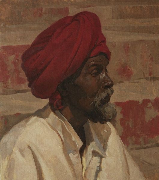 Constantin Artachino painted this portrait, titled "Turk," capturing the essence of a man adorned with a head covering. The headdress, more than mere fabric, speaks volumes. Historically, such coverings signified identity, status, and cultural allegiance across the Ottoman Empire. In early Renaissance paintings, similar head wraps were often used to denote figures from the East, blending curiosity with a hint of the exotic. Now, consider how this motif echoes in Venetian paintings, where turbans became fashionable, or in Orientalist works that romanticized Eastern cultures. Over time, this evolved, shifting from religious significance to exotic fashion, mirroring shifting cultural relations and desires. It engages our subconscious, stirring memories of cross-cultural exchange and the ever-changing perception of the 'Other.' As you stand before this image, recognize the cyclical dance of symbols, forever resurfacing and evolving in the theater of human history.